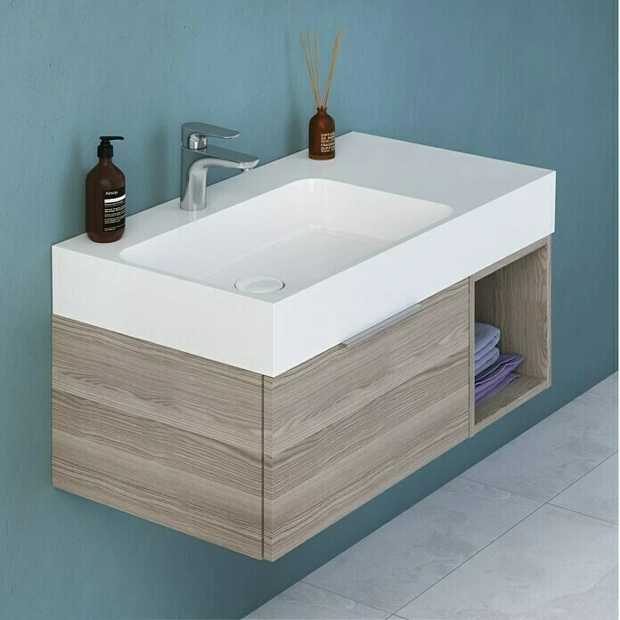 BAUHAUS Camargue Cube Einbauwaschbecken 90 X 49 Cm, Mineralguss, Weiß