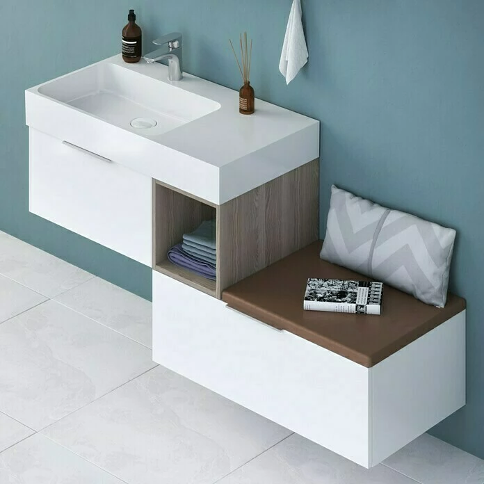 Der Waschtisch Cube von Camargue lässt sich harmonisch mit dem passenden Unterschrank kombinieren. Es überzeugt mit seinen schmutzabweisenden Eigenschaften durch eine hochglänzende, glatte und porenfreie Oberfläche. Der Waschtisch ist ein Teil des innovativen Baukastensystems, mit dessen Sie unzählige Module und Elemente ganz frei zu einer individuellen Badeinrichtung verbinden können. Dabei glänzt die Serie Cube mit raffinierten Details und funktionalen Badmöbeln. Ob stillvoller Spiegelschrank mit LED-Aufsatzleuchte, Leuchtspiegel, praktischer Rollcontainer, die einladende Sitzbank oder der weiße Waschtisch aus Mineralguss – Cube präsentiert sich zeitgemäß und alltagskonform. Auch bei der Möbelfarbe der Serie Cube haben Sie die freie Wahl zwischen Eiche Cordoba oder hochglänzendem Weiß.