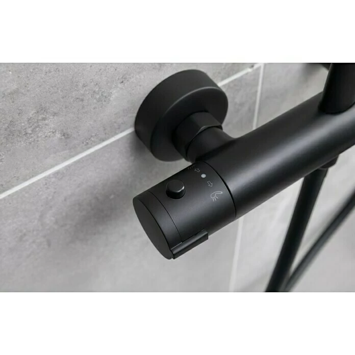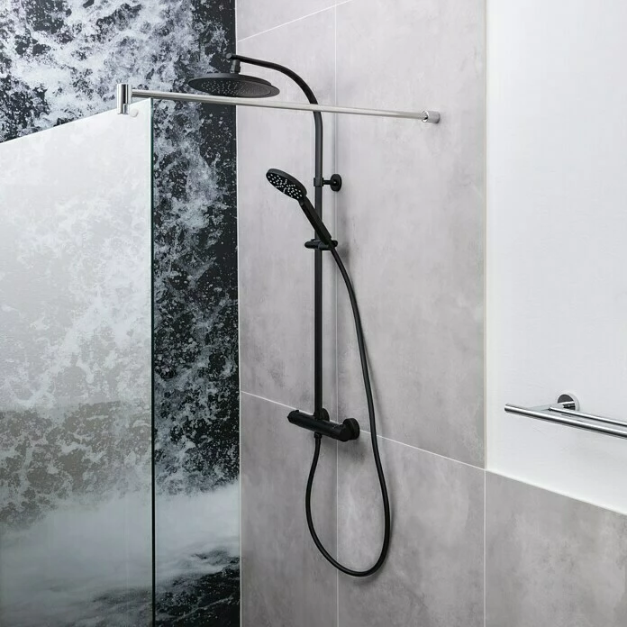 BAUHAUS Camargue Duschsystem New York Mit Thermostatarmatur, Anzahl Strahlarten: 3 Stk., Schwarz