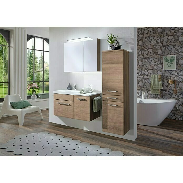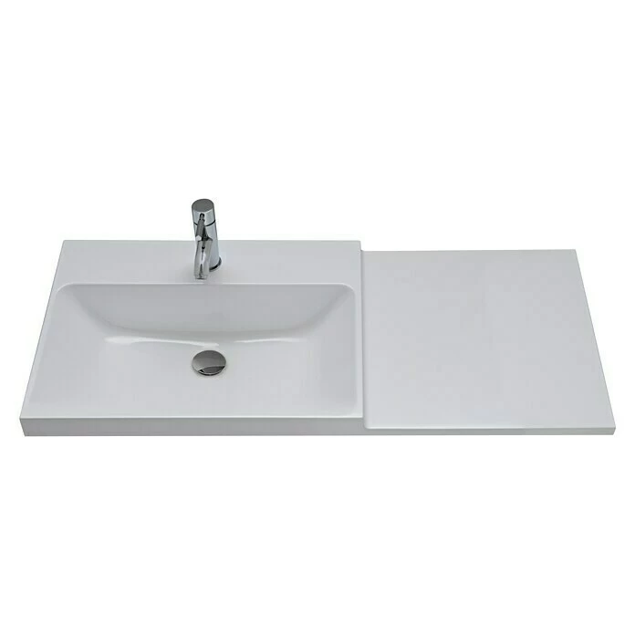 BAUHAUS Camargue Flow Einbauwaschbecken 100,4 X 45 Cm, Mit Schmutzabweisender Glasur, Hahnloch: Mitte, Weiß, Ablagefläche: Rechts