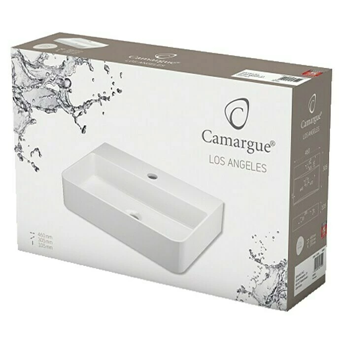 Das Waschbecken Los Angeles von Camargue ist aus hochwertiger Sanitärkeramik gefertigt und überzeugt durch die eckige Form, die dem Becken ein harmonisches und modernes Design verleiht. Das Waschbecken ist durch das großzügig gestaltete Innenbecken vielseitig einsetzbar und eignet sich hervorragend zur freien Wand- oder Aufsatzmontage. Dank der geschliffenen Unterseite kann es ebenso auf einer passenden Konsole montiert werden. Dazu lässt sich ideal eine Armatur kombinieren. Auf der großzügigen Hahnlochbank bietet sich genug Platz um Seifenspender & Co griffbereit abzustellen.