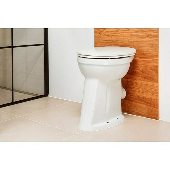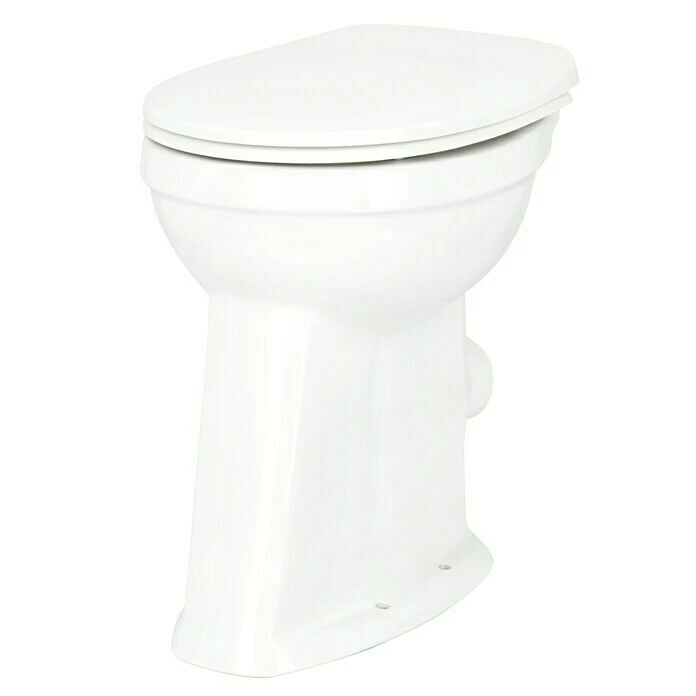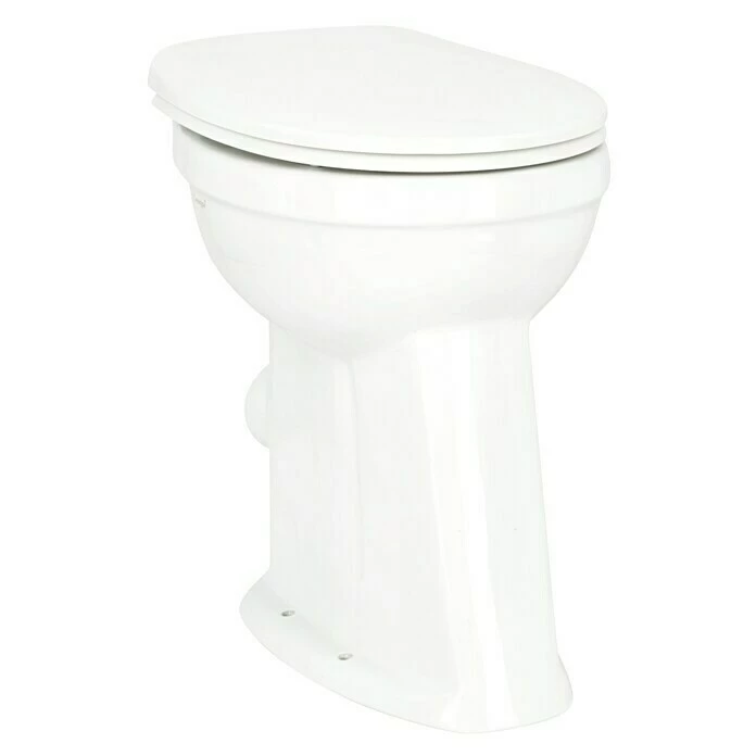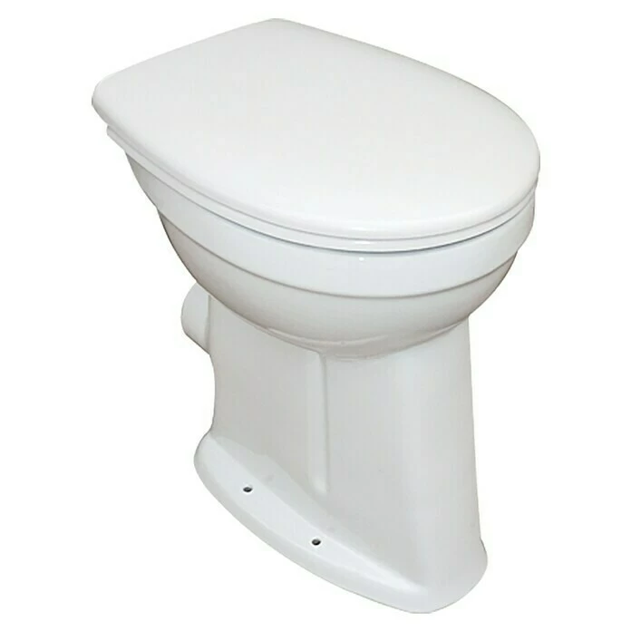 BAUHAUS Camargue Stand-WC-Set Plus 100 Mit Spülrand, Ohne Spezialglasur, Spülform: Flach, WC Abgang: Waagerecht, Weiß