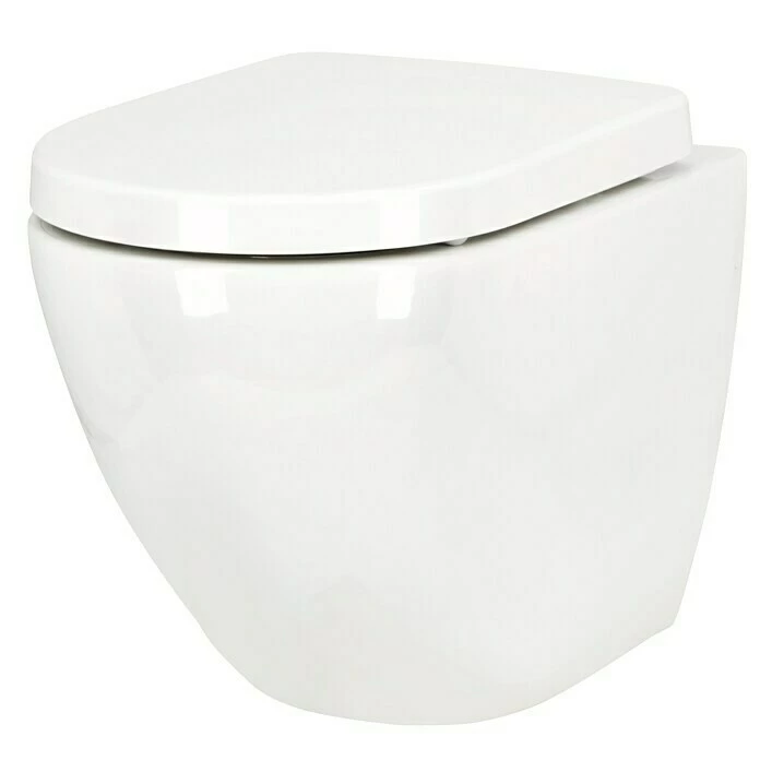 BAUHAUS Camargue Wand-WC-Set Plus 50 2.0 Spülrandlos, Ohne Spezialglasur, Spülform: Tief, WC Abgang: Waagerecht, Weiß