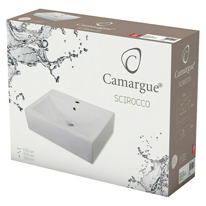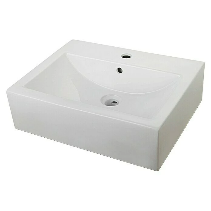 BAUHAUS Camargue Waschtisch Scirocco 53 X 42 Cm, Ohne Spezialglasur, Hahnloch: Mitte, Mit Überlauf, Weiß