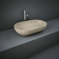 Das Aufsatzwaschbecken Feeling Black ist aus hochwertiger Sanitärkeramik gefertigt und überzeugt durch sein modernes Design mit der ovalen Außenform. So passt sich das Waschbecken optimal an die anderen Bestandteile der gleichnamigen Badserie an.