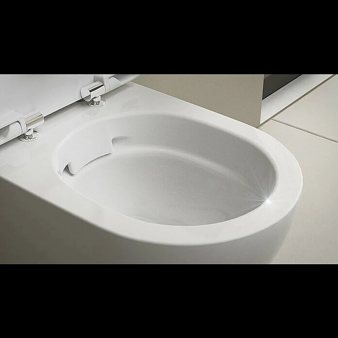 Das spülrandlose Wand-WC Renova Nr. 1 Plan von Geberit setzt neue Maßstäbe in Sachen Hygiene und Pflegeleichtigkeit. Die einzigartige Spültechnik garantiert selbst bei geringen Spülwassermengen ein optimales Spülverhalten und einwandfreie Spülergebnisse. Der neu konzipierte Spülverteiler führt das Spülwasser symmetrisch im WC- Becken nach rechts und links sowie abwärts direkt in den Siphon. Die integrierte Spülstrom-Drosselung im Spülverteiler verhindert das Überspritzen von Wasser, auch bei unterschiedlichen Spülströmen, zuverlässig. Gleichzeitig sorgt der Spülverteiler für hygienisch einwandfreie Aus- und Flächenspülungen. Das gesamte Innenbecken lässt sich so wesentlich leichter strahlend sauber halten. Zusätzlich regulierende externe Vorrichtungen sind nicht notwendig. Ohne Spülrand gibt es keine verborgenen Stellen mehr und mögliche Ablagerungen und Verschmutzungen werden vermieden.