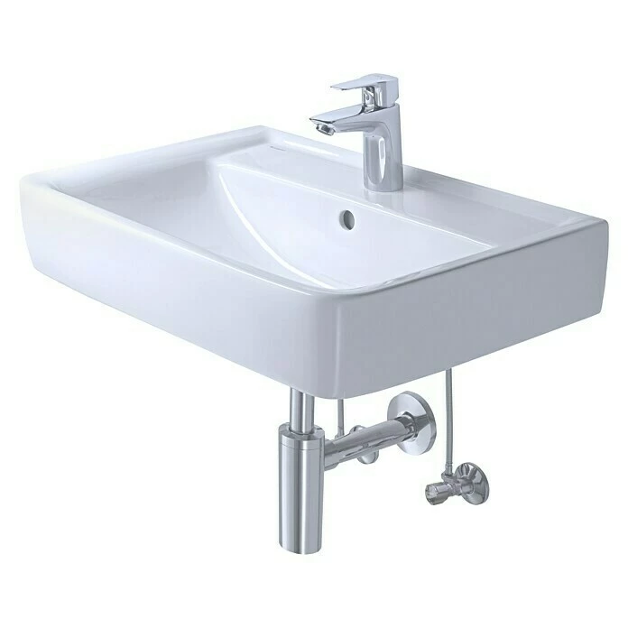 BAUHAUS Geberit Renova Plan Waschtisch-Set 60 X 48 Cm, Ohne Spezialglasur, Hahnloch: Mitte, Mit Überlauf, Weiß, Ungeschliffen