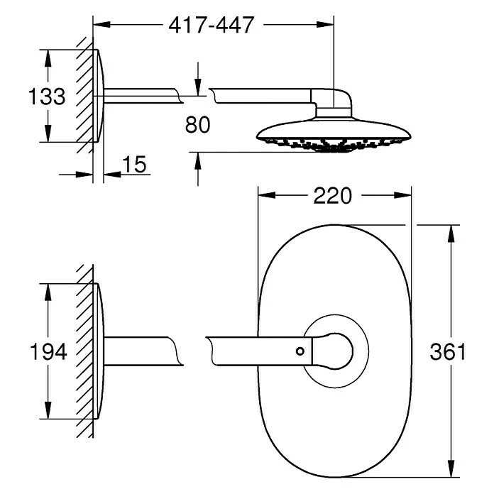 BAUHAUS Grohe Rainshower Duo 360 Kopfbrausen-Set 22 X 36,1 Cm, 39 L/min Bei 3 Bar, Moonwhite/Chrom