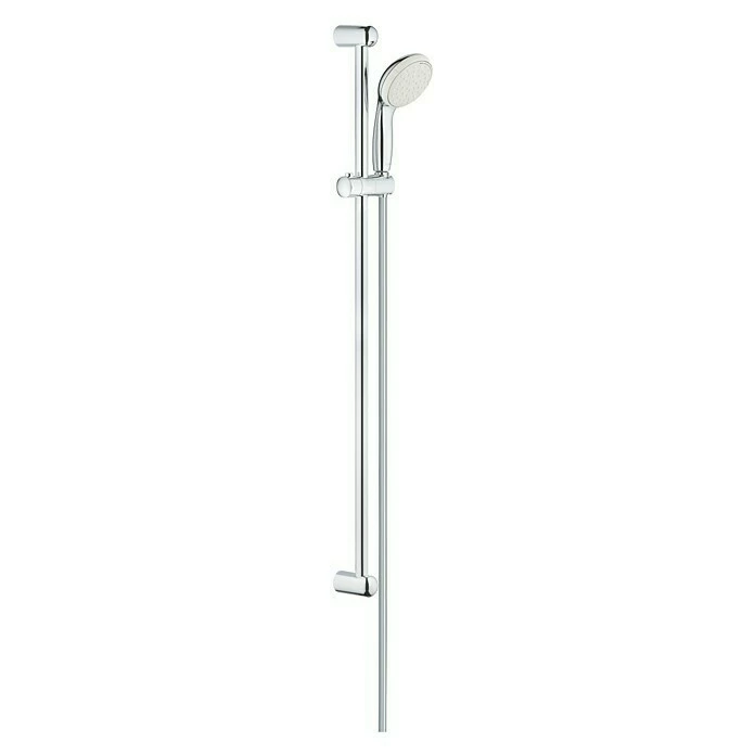 Die Brausegarnitur Tempesta 100 von Grohe besteht aus einer Wandstange mit höhenverstellbarem Konusgleiter, einer ergonomisch geformten Handbrause sowie einem 1,75 m langen Brauseschlauch. Mittels drehbarer Strahlscheibe kann zwischen zwei verschiedenen Strahlarten umgeschaltet werden. Dank des integrierten SpeedClean Antikalk-Systems werden Kalkablagerungen an der Handbrause effektiv verhindert. Dank des integrierten SpeedClean Antikalk-Systems werden Kalkablagerungen effektiv verhindert. Die Grohe EcoJoy-Technologie sorgt für einen reduzierten Wasserverbrauch bei gleichbleibendem Komfort. DreamSpray verteilt auf jede einzelne Düse die gleiche Wassermenge und erzeugt so ein gleichmäßiges, angenehmes Strahlbild. Durch den Silikonring am Brausekopf ist die Handbrause bestens vor Schäden durch Herunterfallen geschützt.