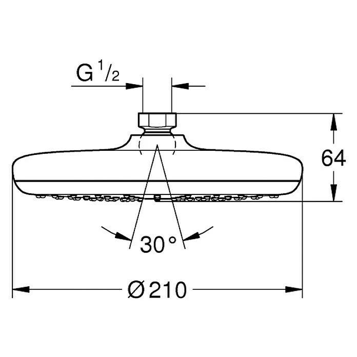 Die Kopfbrause Tempesta 210 von Grohe überzeugt durch ihre praktischen Eigenschaften. Sie bietet eine Strahlart, wobei das integrierte SpeedClean Antikalk-System lästige Kalkablagerungen effektiv verhindert. Die Grohe DreamSpray® Technologie verteilt auf jede einzelne Düse die gleiche Wassermenge und erzeugt so einen angenehm gleichmäßigen Strahl. Durch den ½“ Anschluss passt sie auf jeden handelsüblichen Brausearm. Dank des Kugelgelenks ist sie auch nach der Montage, die einfach und schnell durch Anschrauben an den Arm erfolgt, schwenkbar und kann so jederzeit den eigenen Bedürfnissen angepasst werden. Die Grohe StarLight® Chrombeschichtung schützt den Brausekopf optimal und erfordert kaum Pflege.