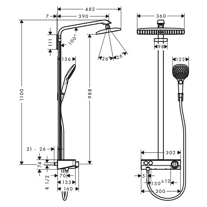BAUHAUS Hansgrohe Duschsystem Raindance E Showerpipe 360 Mit Thermostatarmatur, Anzahl Strahlarten: 3 Stk., Chrom, Höhe: 110 Cm