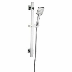 Die Brausegarnitur Laksfors von Mixomat besteht aus der Handbrause, einer Brausestange und einem Schlauch (150 cm). Die Handbrause bietet eine Strahlart, wobei das Easy Clean System nachhaltig Kalkablagerungen an den Düsen verhindert. Die Wandhalter der Brausestange aus rostfreiem Edelstahl sind flexibel einstellbar, so dass bestehende Bohrlöcher genutzt werden können. Die Anbringung kann per Bohren mit dem im Lieferumfang enthaltenen Montagematerial erfolgen oder per Kleben mit dem ebenfalls enthaltenen Adapter. Dazu ist das Nie wieder bohren Befestigungskit BK20 (nicht im Lieferumfang enthalten) erforderlich. Alle Anschlüsse sind auf ½“ genormt und können somit mit allen anderen Mixomat Produkten, wie zum Beispiel Armaturen, Steigrohren oder Kopfbrausen kombiniert werden. Durch den verstellbaren Konusgleiter kann die Höhe der Handbrause den eigenen Bedürfnissen angepasst werden. Der Brauseschlauch ist aus Edelstahl gefertigt und doppelt gewickelt, wodurch er besonders robust und langlebig ist. Zusätzlich besitzt er eine Anti-Twist-Eigenschaft, welche lästiges Verdrehen des Schlauchs verhindert. Alle Bestandteile der Garnitur, die mit Wasser in Verbindung kommen, sind KTW/W270 zertifiziert und erfüllen somit alle gültigen Trinkwassernormen.