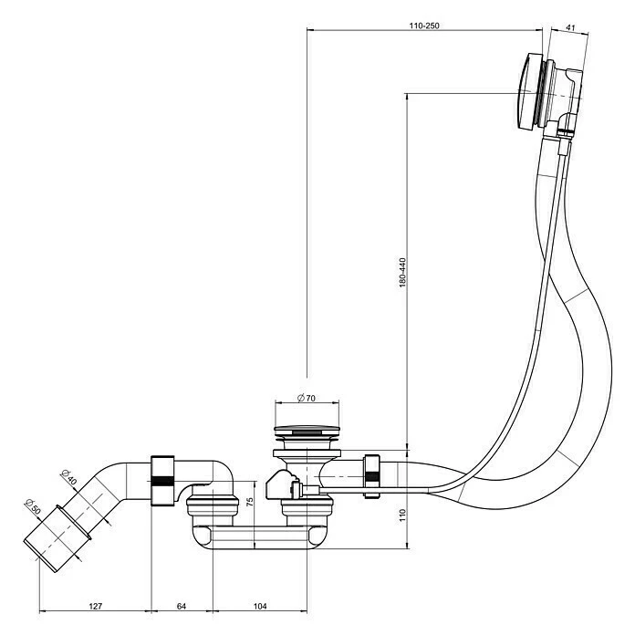 Die Ottofond Ab- und Überlaufgarnitur eignet sich hervorragend für Ihre Eckwannen.Das Überlaufrohr ist flexibel und damit passgenau und problemlos zu montieren.Am Überlauf befindet sich ein Drehexcentergriff mit dem sich der Ablaufstopfen öffnen und verschließen lässt.Somit muss nicht in das Wasser gegriffen werden, um den Auslass zu betätigen.Das Abgangsrohr hat einen 40 mm und einen 50 mm Anschluss und kann problemlos mit HT-Rohren verlängert werden.