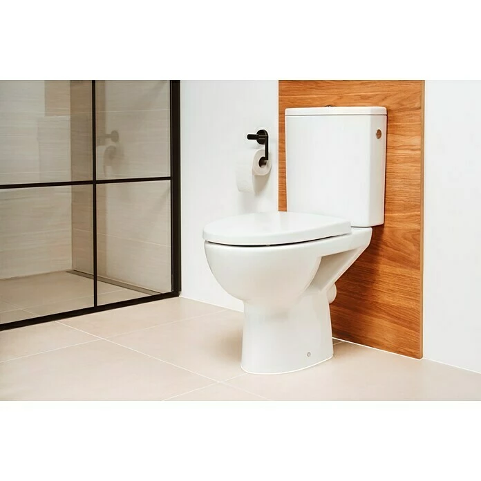 BAUHAUS Stand-WC-Kombination Parva Spülrandlos, Ohne Spezialglasur, Spülform: Tief, WC Abgang: Waagerecht, Weiß